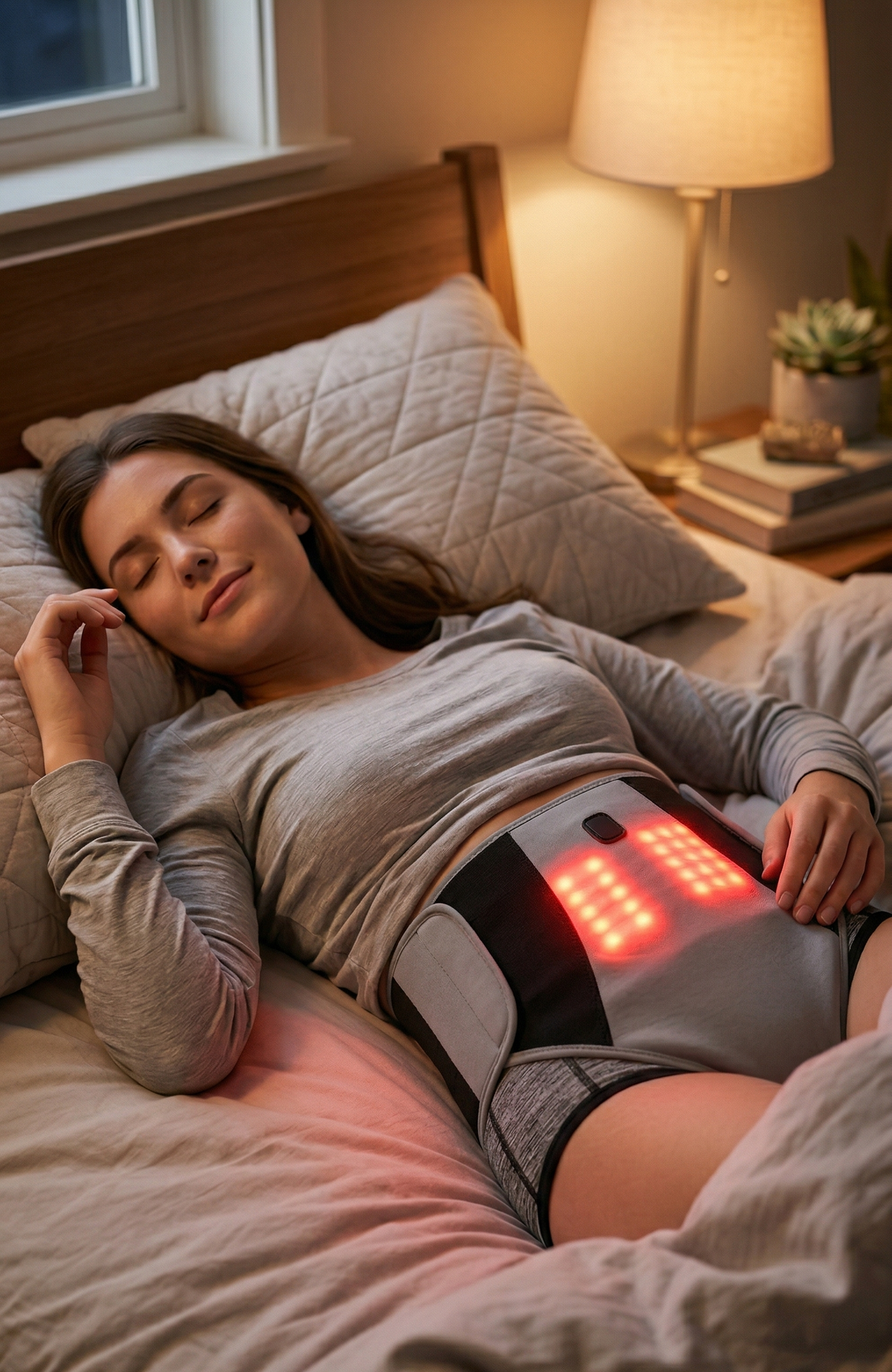 Lyveli Relief Wrap combines 162 Red Light LEDs (660nm) with targeted heat therapy to reach the uterine muscle — where cramps actually start.